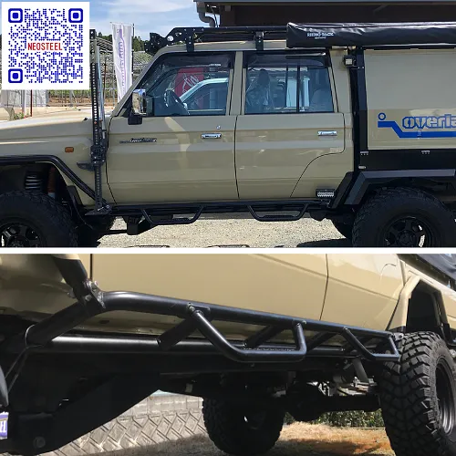 取付は第1ブラケットをフレームに溶接が必須。ブラケット取り付け後は脱着可能。材質はスチール製